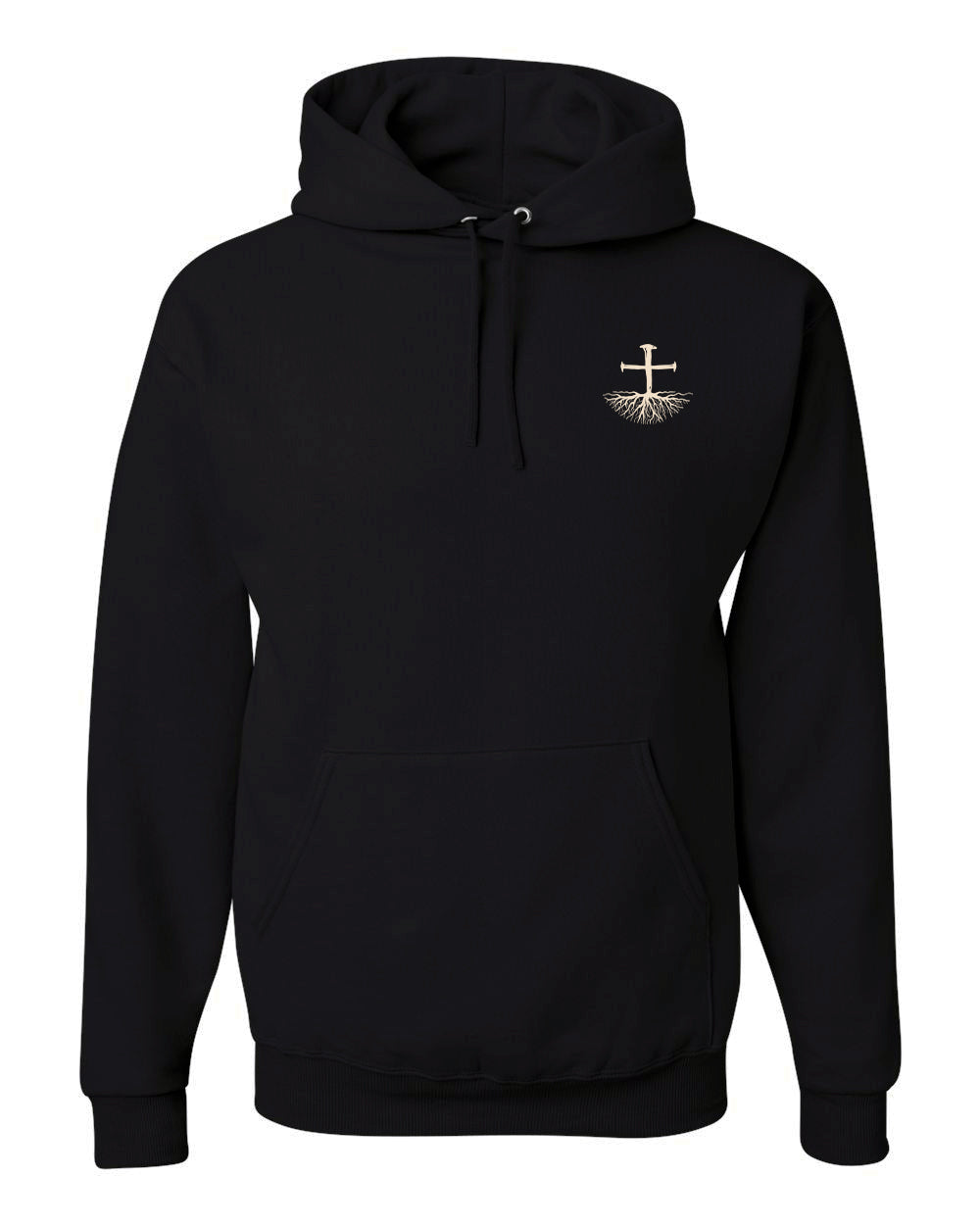 This is a Jerzees hoodie that combines classic style with soft fleece for lasting comfort. It is 8.0 oz., pre-shrunk, and material is 50/50 Cotton/Polyester. Has a tearaway label.