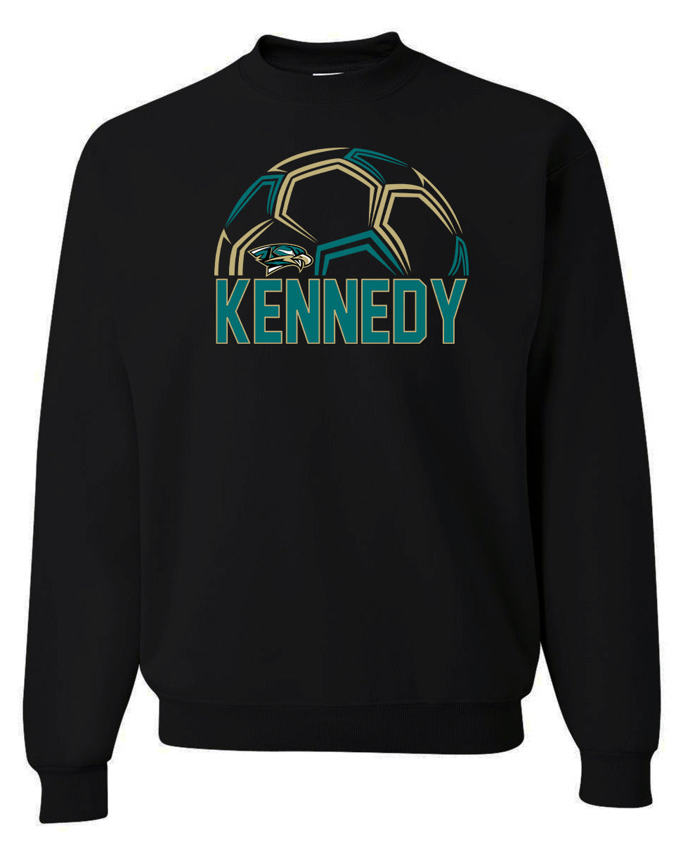 This is made on a Jerzees Crewneck Sweatshirt that combines classic style with soft fleece for lasting comfort. It is 8.0 oz., pre-shrunk, and material is 50/50 Cotton/Polyester. Has a tearaway label.